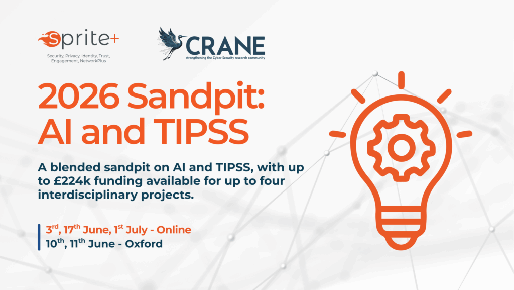 Together with SPRITE+, we are pleased to invite applications to attend a blended sandpit on AI and Trust, Identity, Privacy, Security, and Safety (TIPSS). Up to a total of £224k of combined SPRITE+ and CRANE funding will be made available to fund up to four interdisciplinary projects arising from this sandpit.